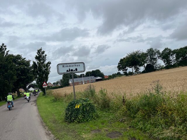 Efter at have kørt ca. halvdelen af løbet ankom vi til Rimmerhus (mindre landsby), hvor vi spiste madpakke i byens nybyggede madpakke-pavillion -siddeplads til alle. Bespisningen bestod af 3 store håndmadder (små smørrebrød) med øl eller vand til.