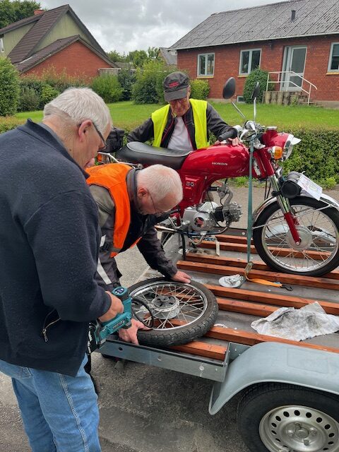 Køreturen havde også sine vanskeligheder. Efter få km. fik en, en sprængt kæde og måtte op på følgebilen. Skaden blev dog udbedret ved ihærdig indsats under den første pause.